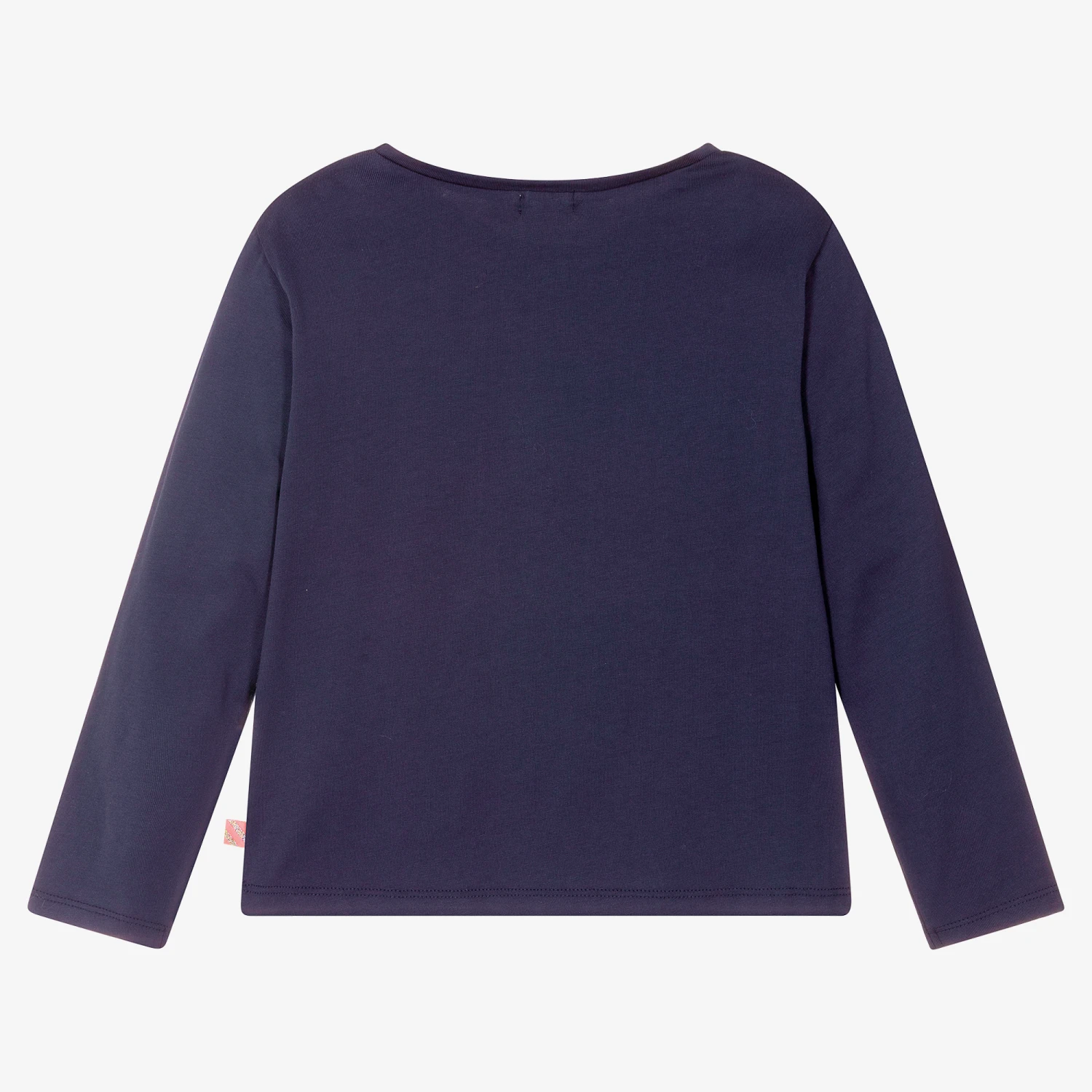 Navy blue top for girls by Billieblush, made in soft cotton jersey. The front has a glittery print of a rabbit and unicorn with reversible sequins.