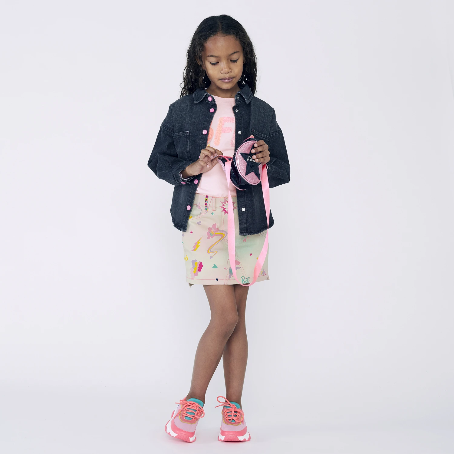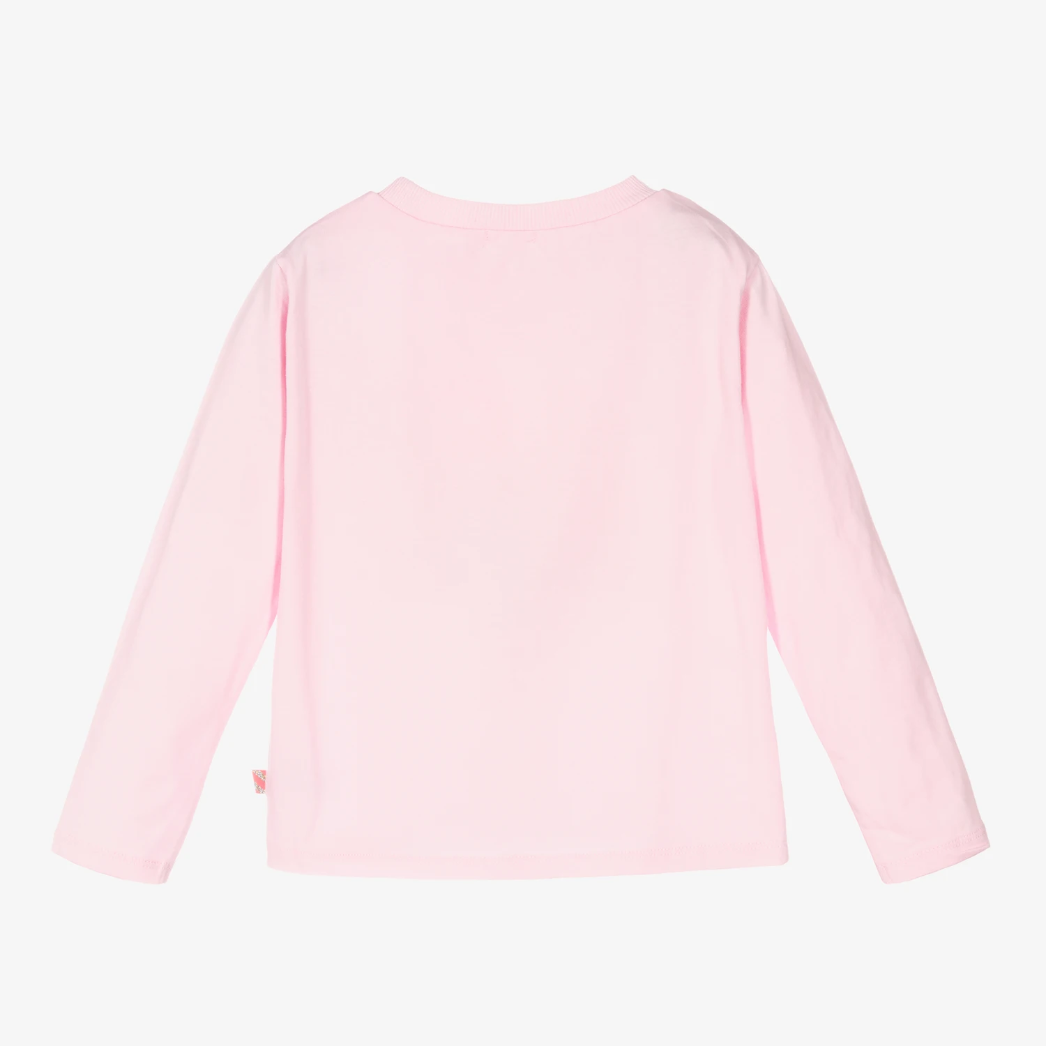 Cute pale pink long-sleeved T-shirt for girls by Billieblush. Made in soft cotton jersey, it has a neon orange and pink sparkly ‘BFF’ print on the front.