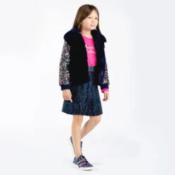 Pale pink sweatshirt for girls by Billieblush, made in comfortable cotton jersey. It has an eye-catching, varsity look with a glittery green and neon pink ‘ENJOY’ slogan printed on the front, and the brand’s pink logo below. The short, seamless sleeves that are open to the waist, the large cosy hood and an elasticated waistband create a cool, slouchy fit.