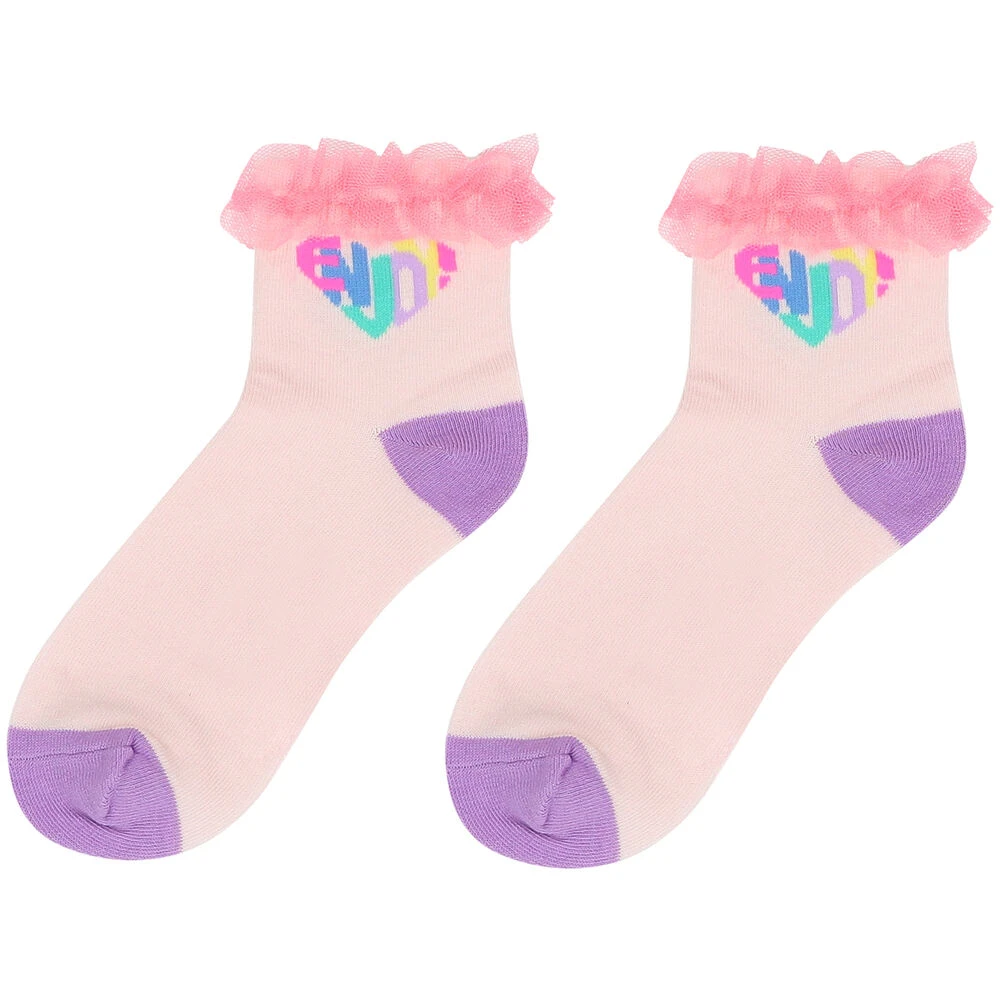 Pink socks for girls by BILLIEBLUSH. Made from soft cotton, they feature pink ruffled tulle trims and a heart shape slogan.Â