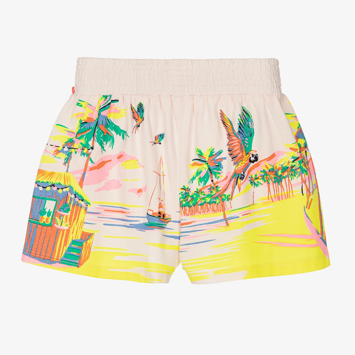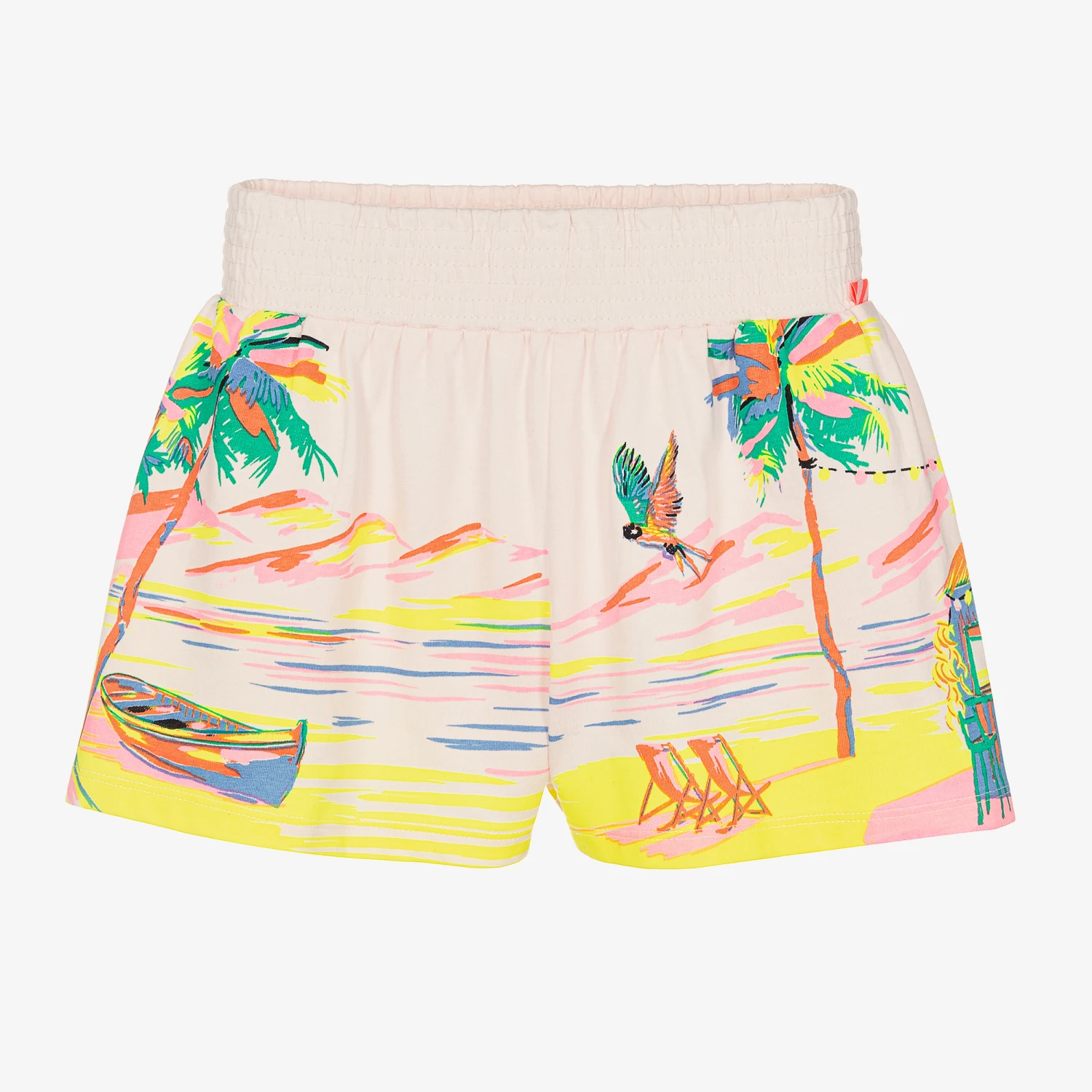 Tropical pink shorts for girls by Billieblush, made in beautifully soft cotton jersey. Ideal for fun days on the beach, they have a serene palm tree, seaside print with a comfortable elasticated waist.
