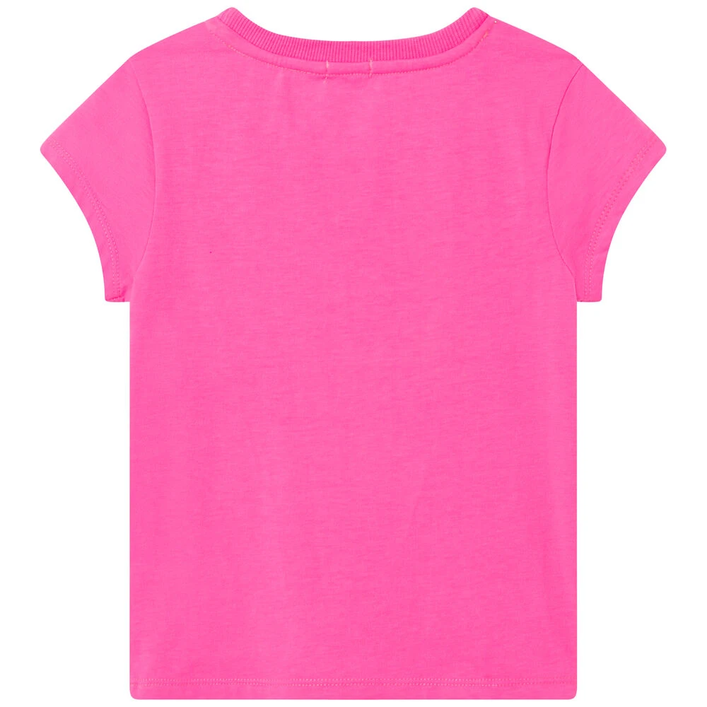 Pink sea shell t-shirt for girls by Billeblush. Made from soft cotton, it features colourful glittery sea shell print on the front.