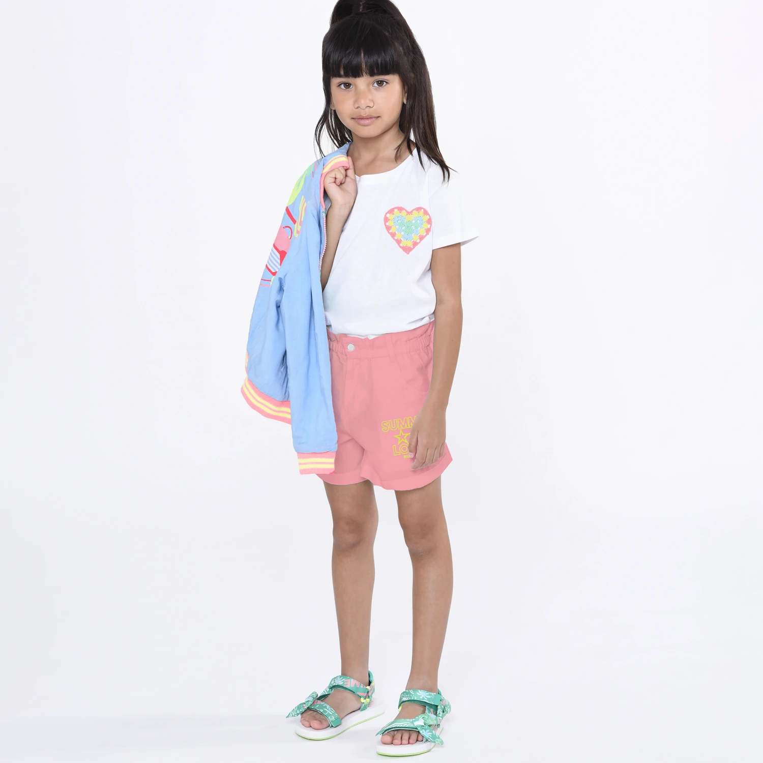 Classic white T-shirt for girls by designer Billieblush, made in luxuriously soft jersey. It has a colourful crocheted heart on the chest, adding a fun twist to a simple design.