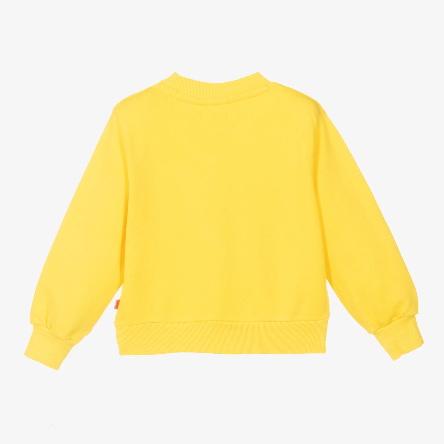 Yellow sweatshirt for girls by Billieblush, made in soft and mid-weight cotton jersey. It has a reversible sequin heart design on the front, with a neon pink logo beneath.